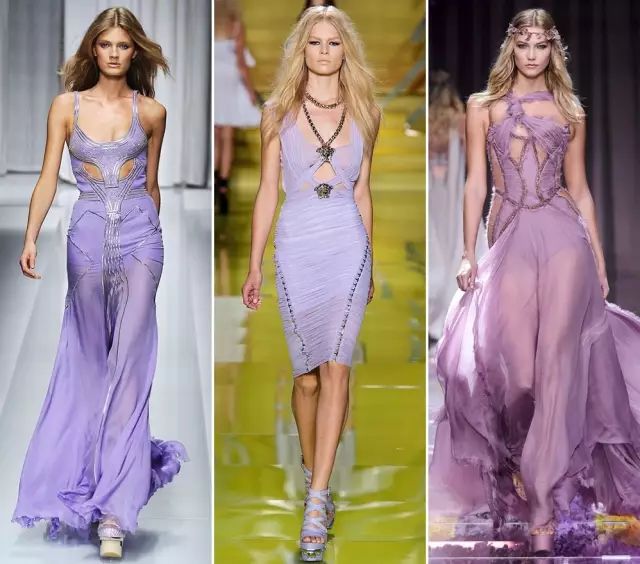 接下来这件亮片装饰缠绕交织的紫色长裙