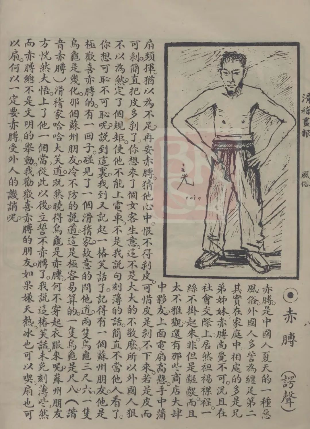 在公共场所光膀子等行为,被国民政府视为旧社会的陋俗,需要加以改良。