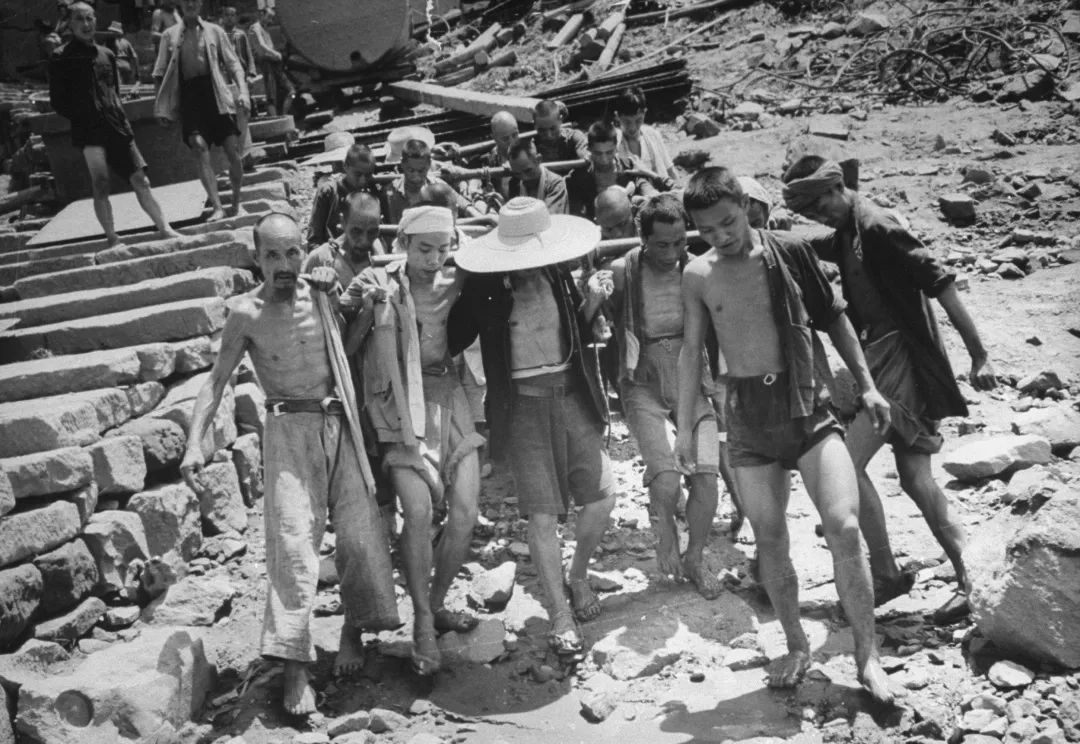 1941年,重庆,劳作中的工人。工人劳动强度大,夏天劳动起来,汗如雨下,衣服根本穿不住,想顾及形象也难