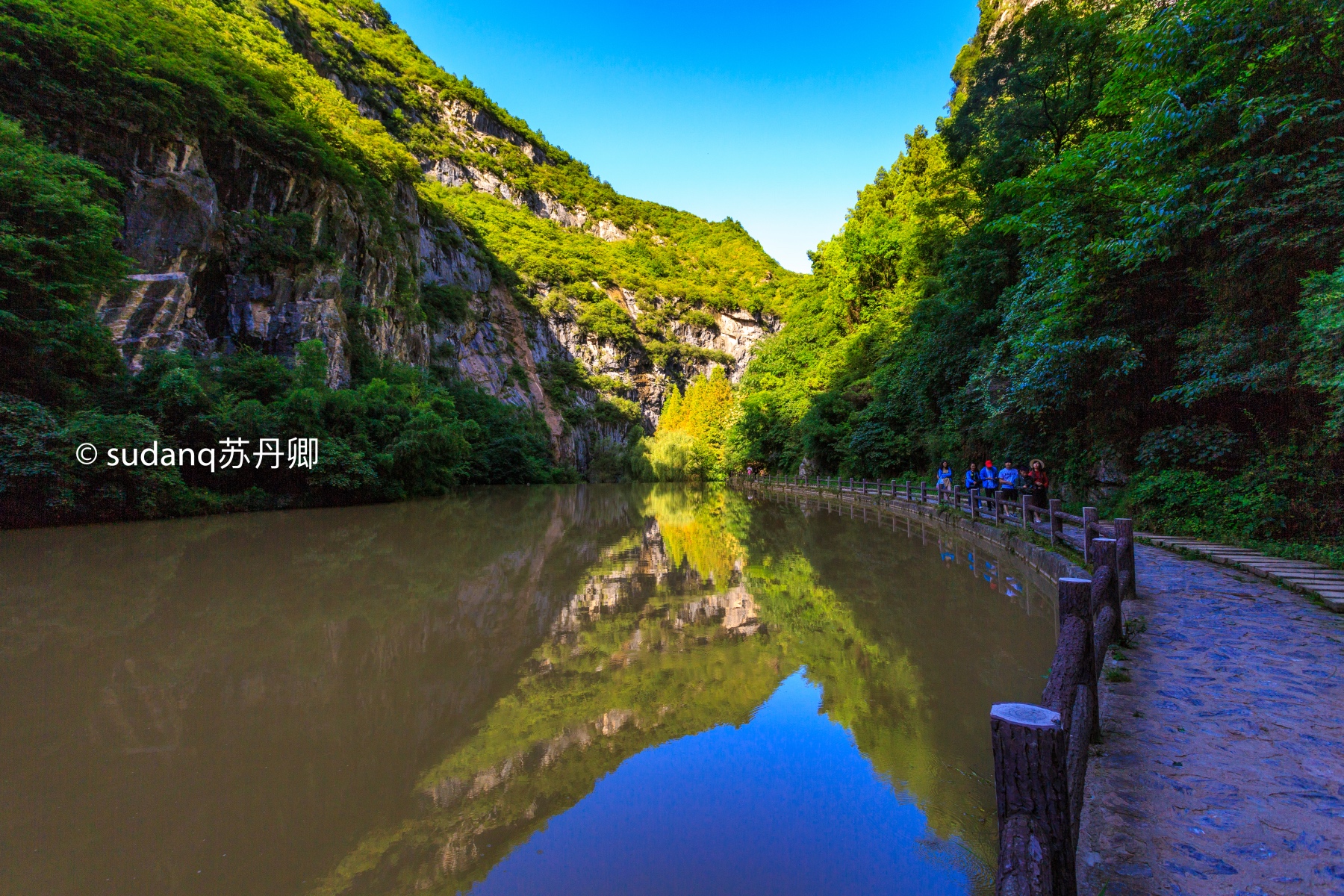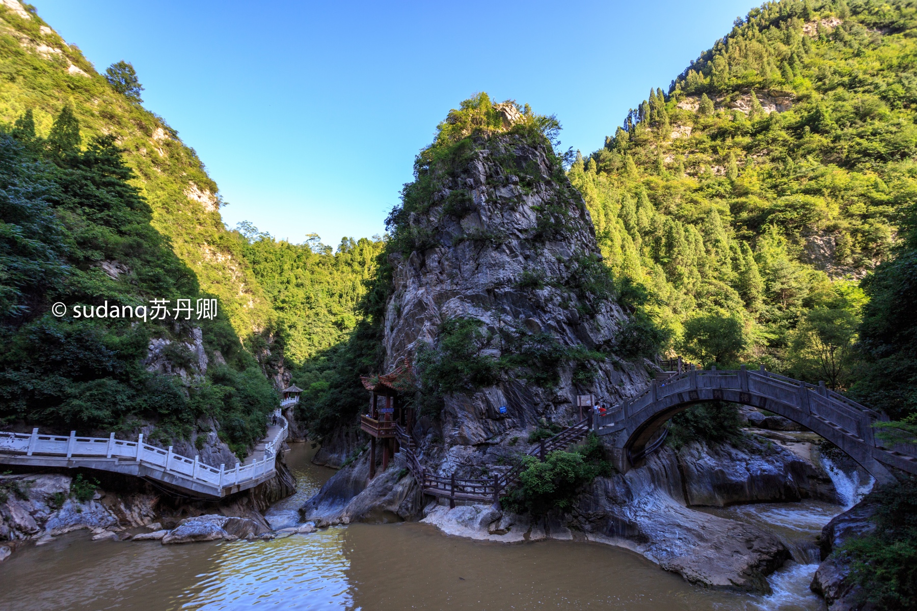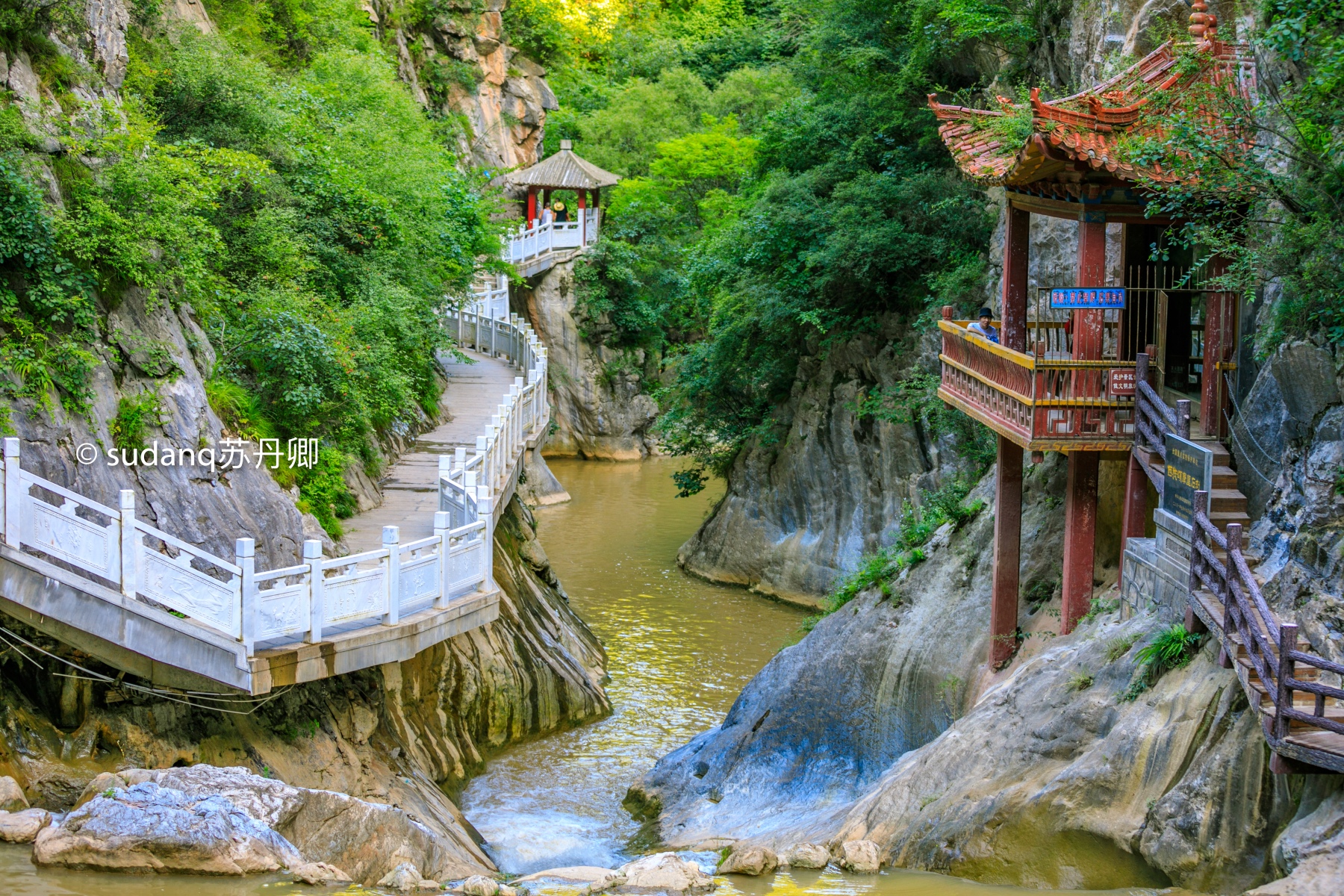 这里风光清幽绮丽,青山对峙,涧流清澈,最是令人感到“世外”的是那高低不同的悬崖栈道,因风吹雨打而生出的古朴自然好似是古人搭建出来的。
