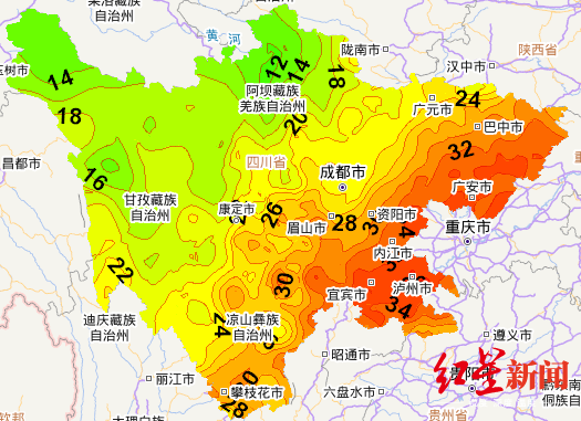 因为下了场雨,盆地又成了“鸳鸯锅”:雨水浇灌后西部“清凉派”和得阳光“恩宠”的东部“炽热派”。8月2日午后2点,除了广元,盆地东部城市在广安、泸州、达州带领下,憋着劲要冲击35℃的“高温日”,而雅安、眉山、成都等地都是30℃以下,甚至刚刚过23℃,加上下雨时的阵性大风,好不凉爽。