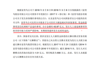 与此同时,富贵鸟还深陷担保泥潭。国泰君安公告称,富贵鸟预计至少 49 亿元资产可能无法收回。债务危机严重打击了富贵鸟的实体经营。