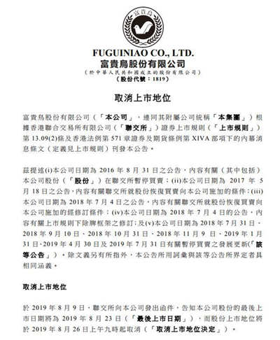8月12日,还不起账的富贵鸟宣布,将被取消上市地位。今年8月26日,将是富贵鸟在港股的最后一天。