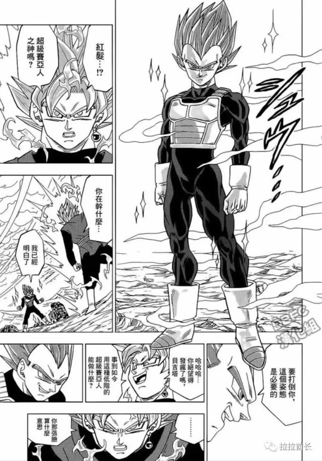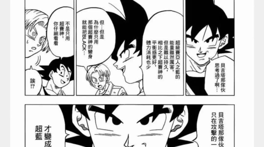 贝吉塔在目前的《龙珠超》动画版中仍未出现变身为红超的状态,但在漫画版与黑悟空的战斗中,贝吉塔曾经以红超及蓝超交替进行的方式来与黑悟空战斗,在贝吉塔与黑悟空的战斗中,孙悟空在一旁解说着:“超级赛亚人之蓝的能量虽然厉害,但是难以持久,相比较之下超赛神的平衡感更好,体力消耗也少…”