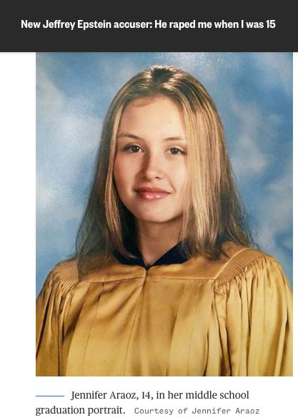 纽约女詹妮弗·阿罗兹(Jennifer Araoz)的遭遇,就是众多此类女孩的一个典型代表。2001年,14岁的阿罗兹还是纽约城市高中的学生。她遇到了一位看起来友好的女性,被问到家庭情况、经济条件。不久后,女人将阿罗兹带到了爱泼斯坦的大厦。
