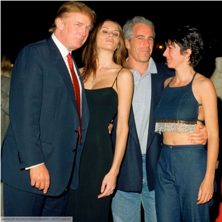 川普(左)、米兰妮、爱泼斯坦和其女友吉莱纳·麦克斯韦