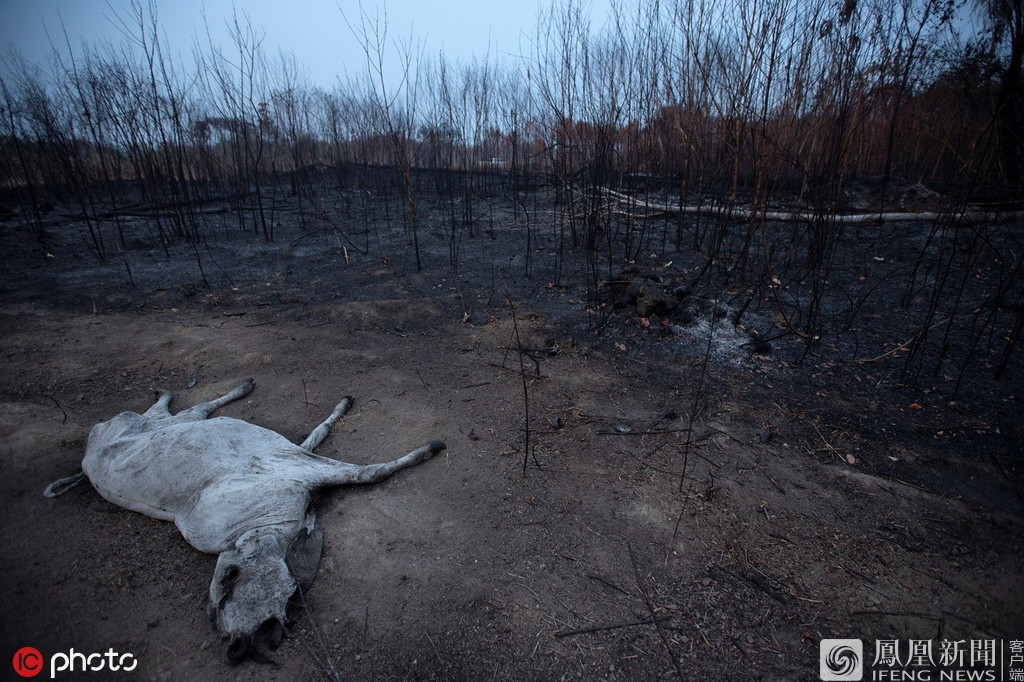 8月26日报道,当地时间8月24日,亚马孙雨林大火后的小径上发现一头母牛的尸体。当地时间24日,据外媒援引巴西政府官方数据,在巴西亚马孙雨林内又新增了数百个起火点。在巴西邻国玻利维亚境内,东部地区的雨林大火仍在持续蔓延,并没有减弱的迹象,而近来的强风及高温天气加剧了本已严峻的形势。目前过火面积已经超过80万公顷。来源:IC photo