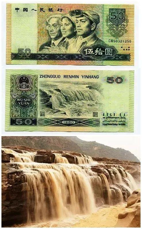 第四套人民币50元背面:黄河壶口瀑布
