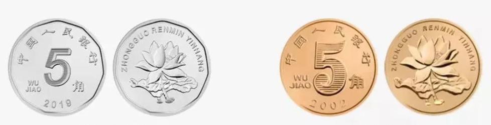 2019年版五角硬币(左)和1999年版五角硬币(右)