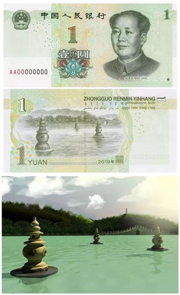 第五套人民币1元背面:三潭印月
