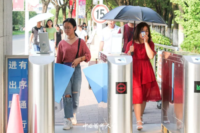 学生“刷脸”通过人脸识别门禁 中国药科大学公众号 图