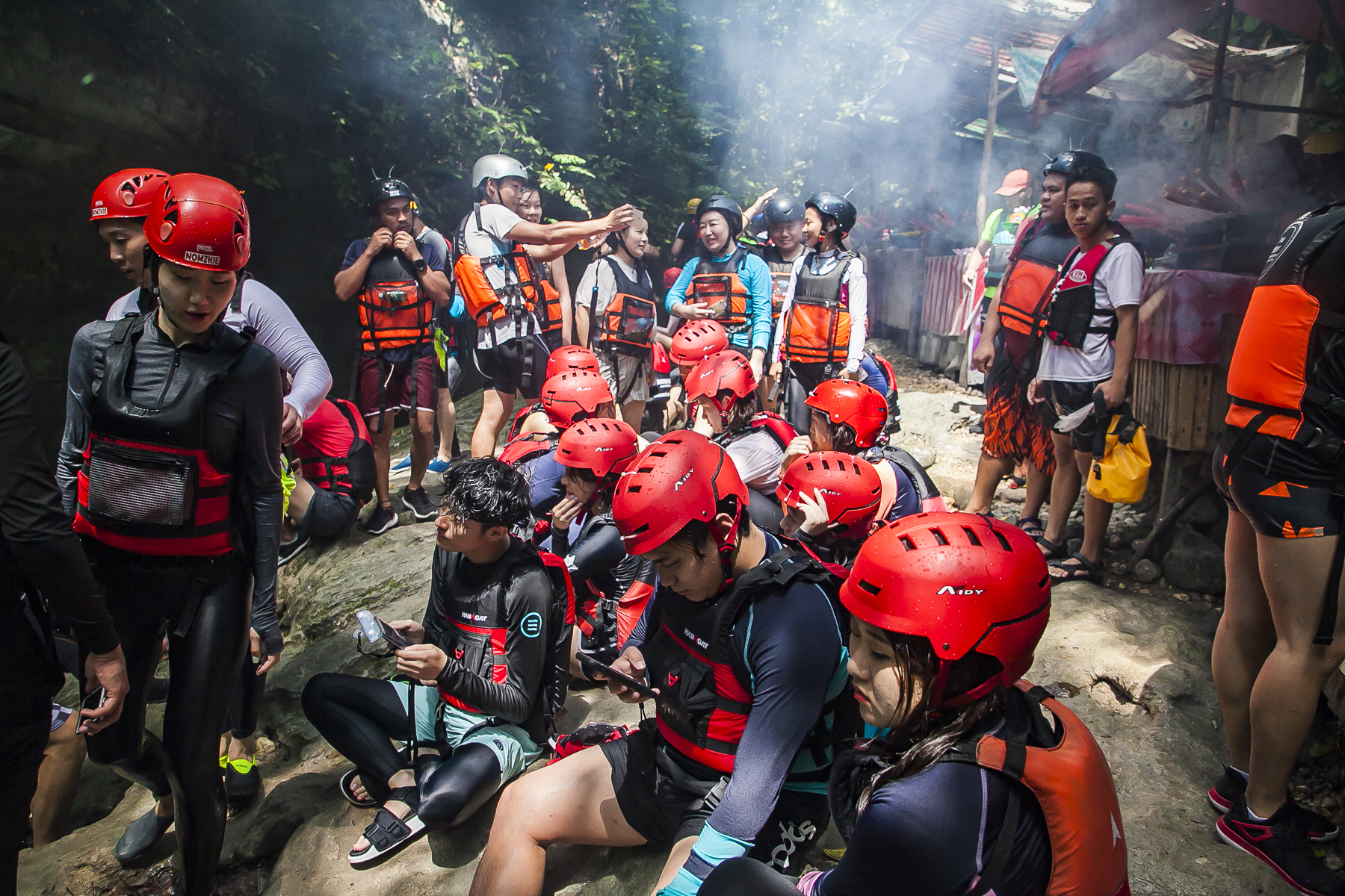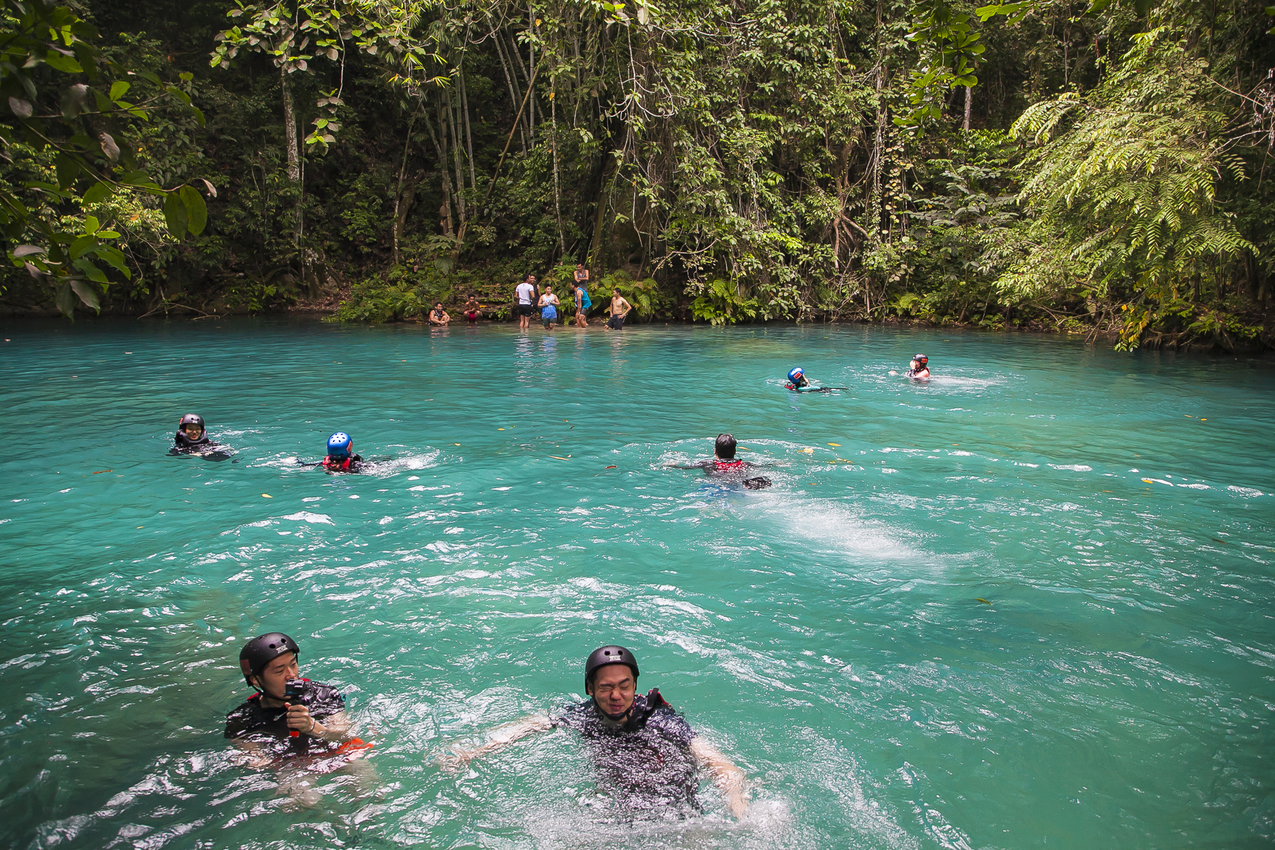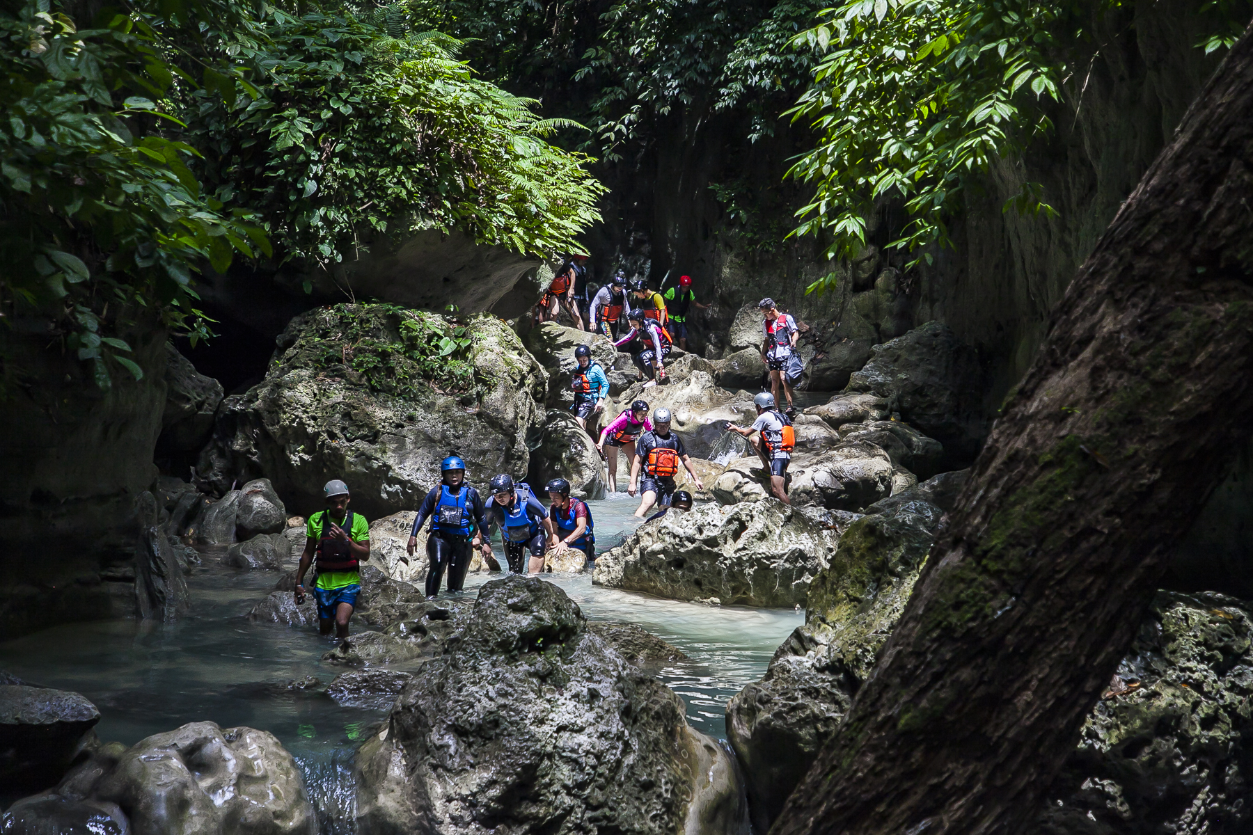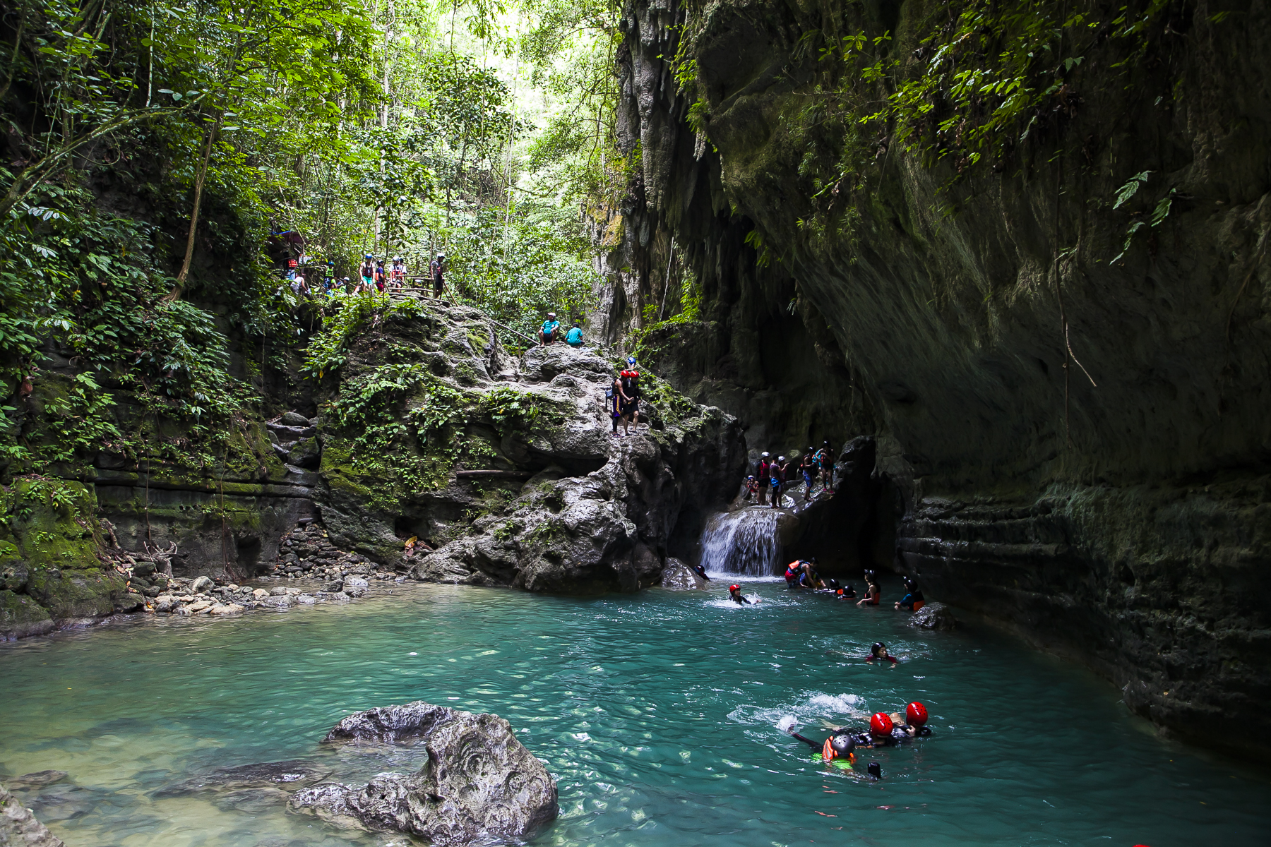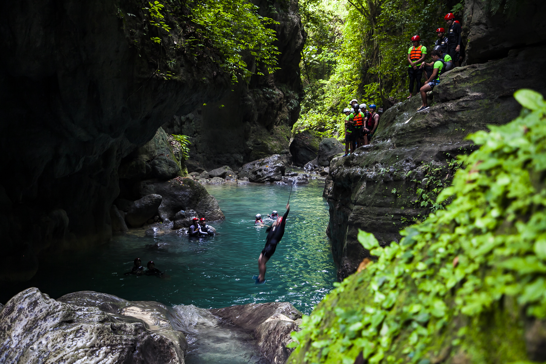由于菲律宾的蹦谷大多是在瀑布附近进行,需要沿着瀑布跳水的环节比较多,因此在这里就叫“蹦谷跳水”。蹦谷跳水需要一颗强大的心脏,一旦你进入到卡瓦山瀑布群,是没有回头路可以走的。