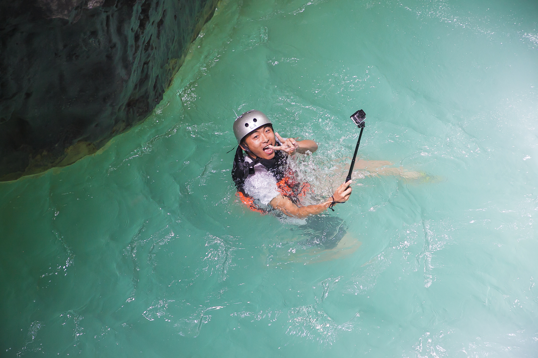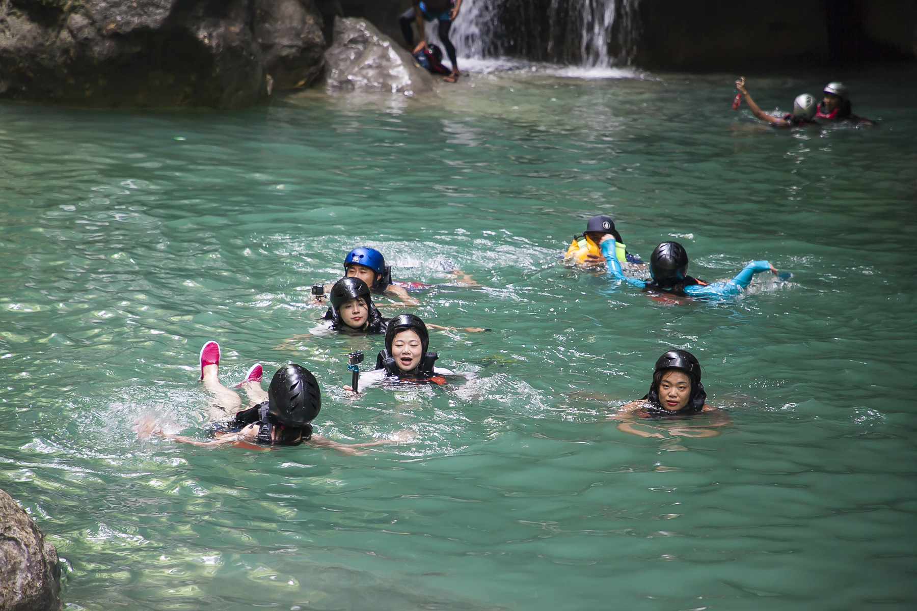 第一次站在高高的石头上跳进河水中的时候,我是心跳加速,随后,大家也就像下饺子一样,一个接一个的跳了下来,每个人跳下的时候都伴着尖叫。当然,你也不用担心安全问题,因为跟着专业人士走,他们知道哪里可以跳哪里水浅不能跳,安全性还是很高的。