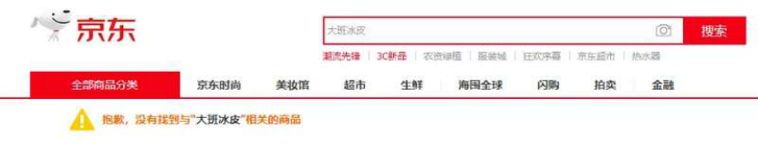 用网页版京东搜索“大班月饼”、“大班冰皮”,显示“没有找到相关商品”。