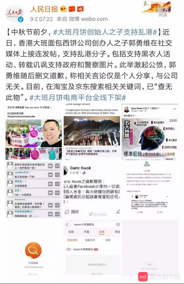 但此举似乎没有起到任何作用。9月1日晚间,“香港大班月饼”的词条已登上微博热搜。很多网友抵制该品牌的产品,甚至自发在电商平台上举报有销售此产品的店家。