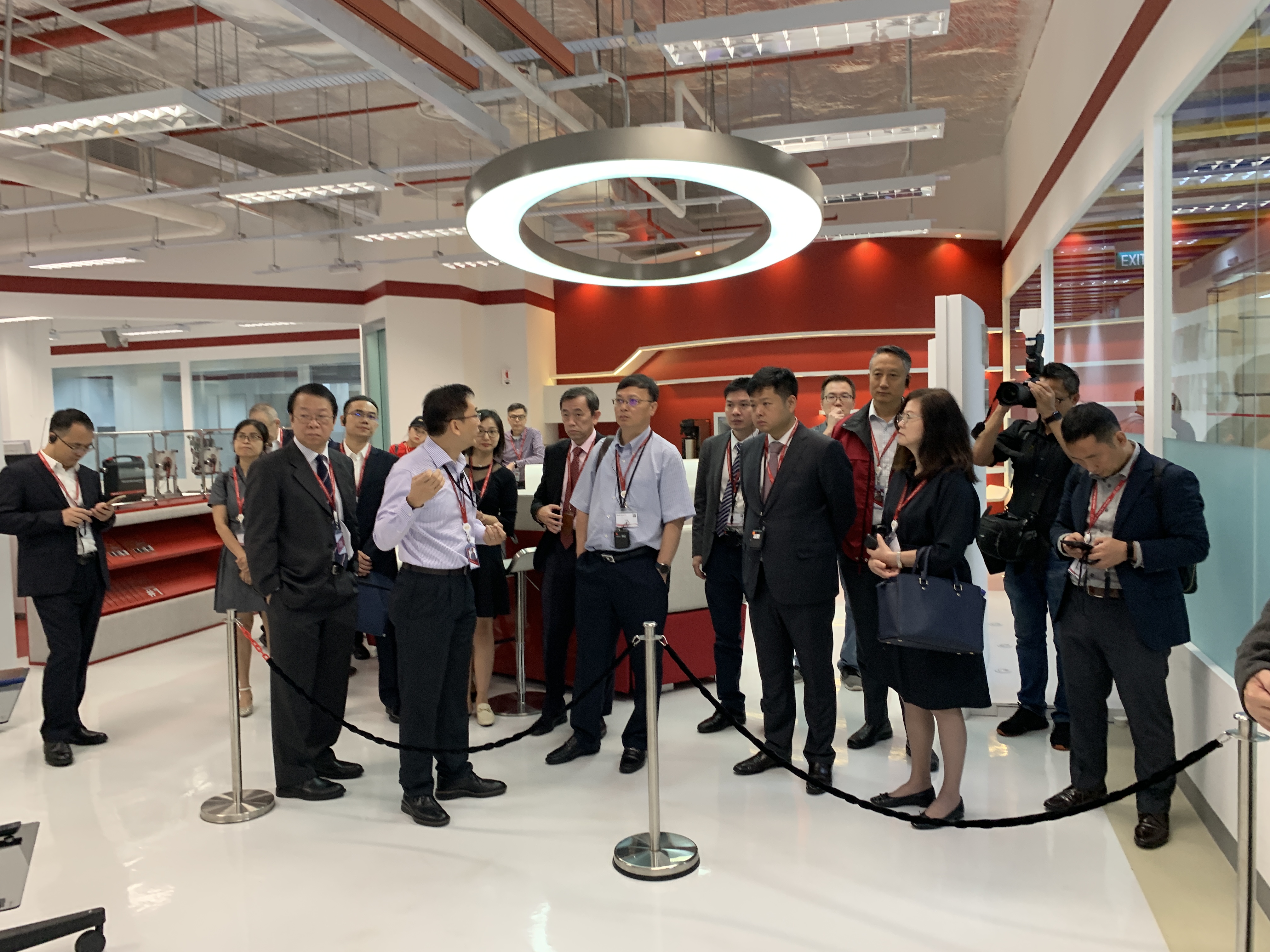 ASMPT集团副总裁欧钢的陪同下,成都市经济和信息化局副局长车轴、中国驻新加坡大使馆科技参赞王蓉芳、电子科技大学集成电路研究中心主任张波等成都市相关协会和企业代表一行在实地参观了ASMPT公司的创新中心和实验室,并与ASMPT公司高管展开深入交流。