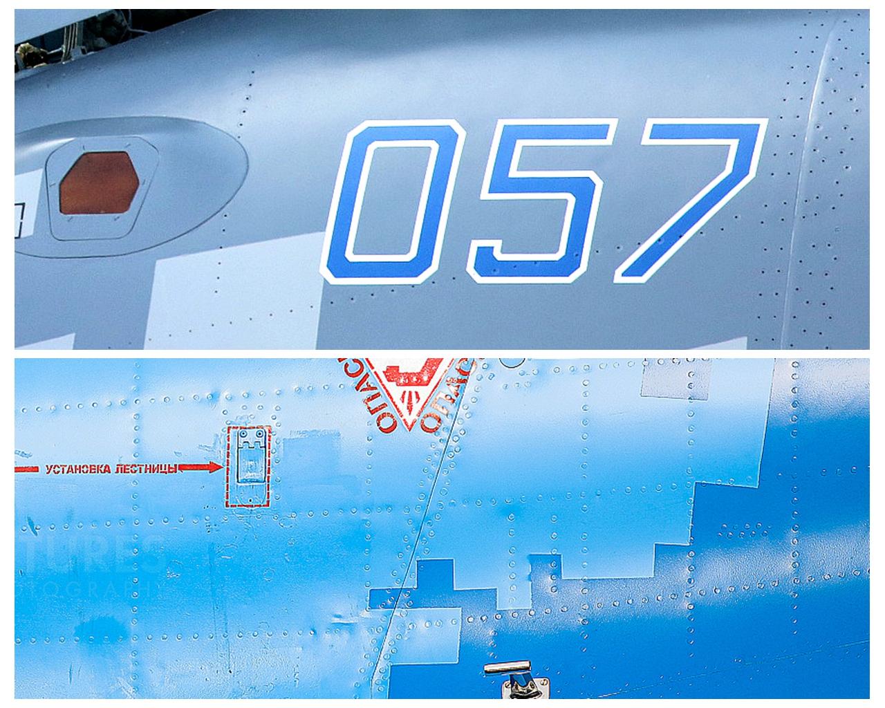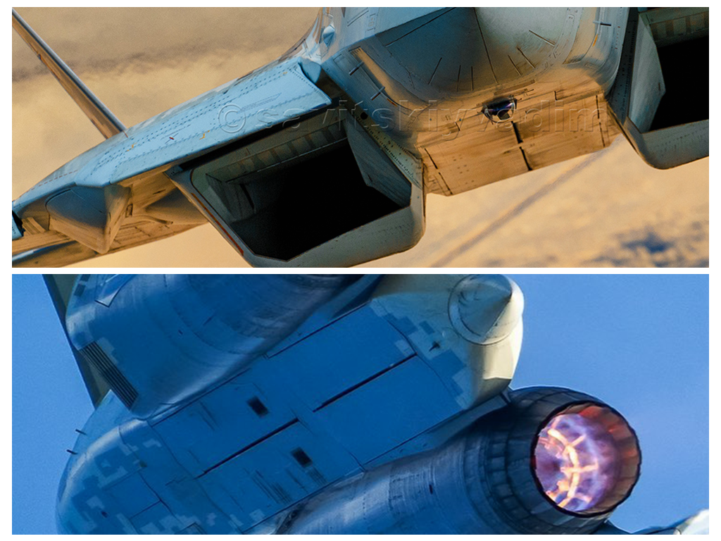 △将苏-57(上)的近照与苏-30(下)做比较,可发现后者的机身蒙皮明显凹凸不平,前者的紧固件带有螺孔