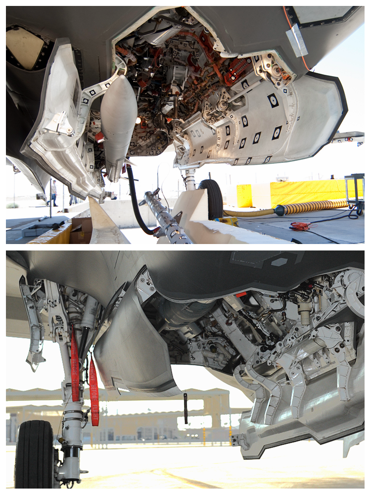 △F-35的机腹舱门/舱盖相当多,其表面高度与缝隙皆保持很小的公差以确保隐身性能不受影响