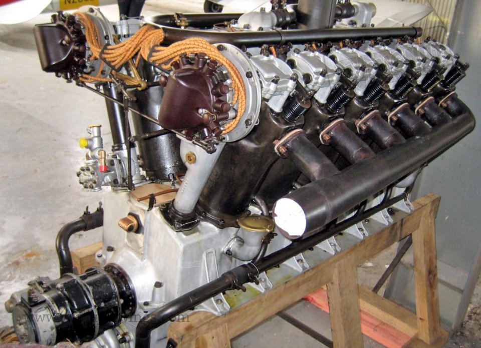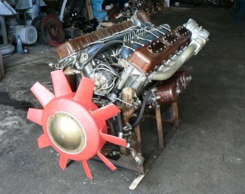 这是一台神奇的发动机,是当时最大的V8汽油发动机,排气量1100立方英寸(约18升)。采用很多先进技术,如双顶置凸轮轴(DOHC)、中置火花塞、齿轮传动、创新专利的8向功率分配器、一体式全铝铸造、17.5英寸双碟离合器等。