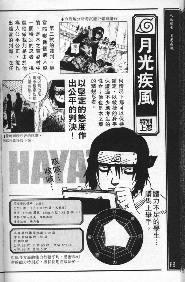 而在官方设定集《临之书》中,我们可以看到月光疾风的八维图非常的平均,甚至可以用中庸来形容了。月光疾风由于体弱多病,所以在力量以及查克拉方面都弱了一大截,而且他所有的能力值加起来只有49。哪怕是同为特别上忍的惠比寿,只擅长教学生的他能力数值都达到了50。由此可见,月光疾风在特别上忍这一档中也并不算出色,他的实力可能也就是比中忍强上一点。