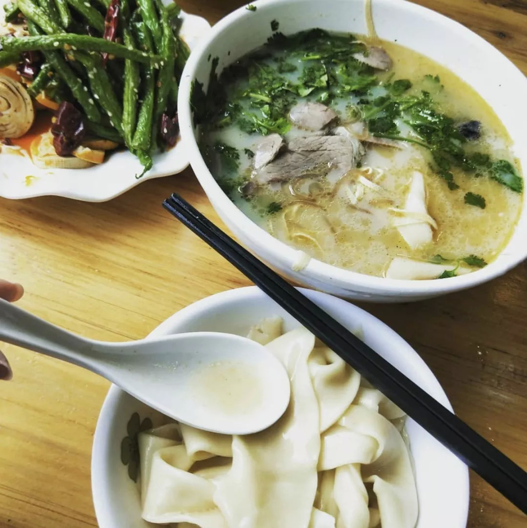 汤汁带着点甜味,让烩面片迅速冷却下来。吃完面再喝一口热汤,舒畅。