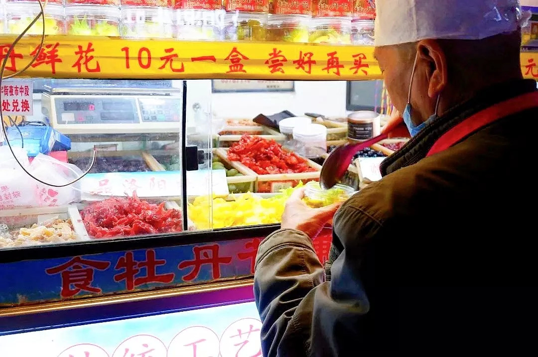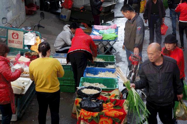 鸡鸭鱼肉、葱姜蔬菜、手工馍、现包的馄饨、现压的面、老式糕点、咸菜疙瘩……穿得整齐的爷爷推着自行车从旁边过,奶奶们挑选蔬果的奥义阿球至今不懂。