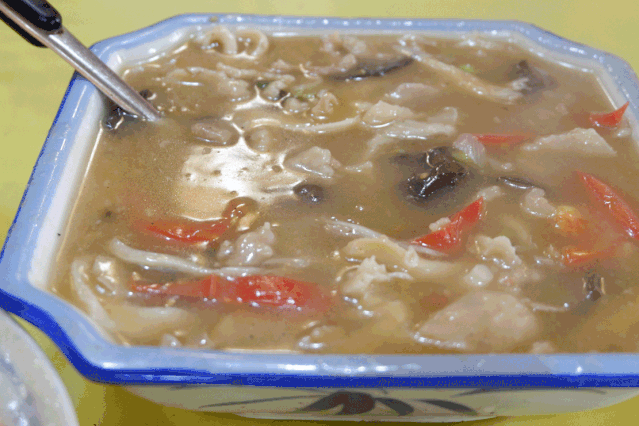 不过比起两道重头菜——“牡丹燕菜”和“洛阳海参”。当地人强推的反而是较为家常的“连汤肉片”。