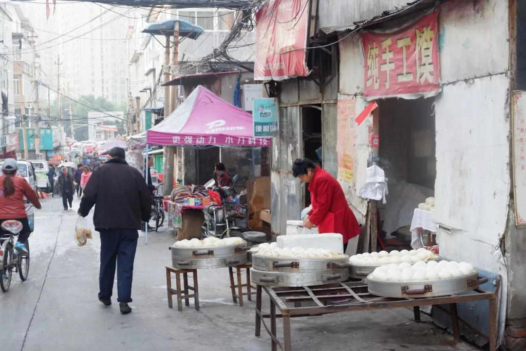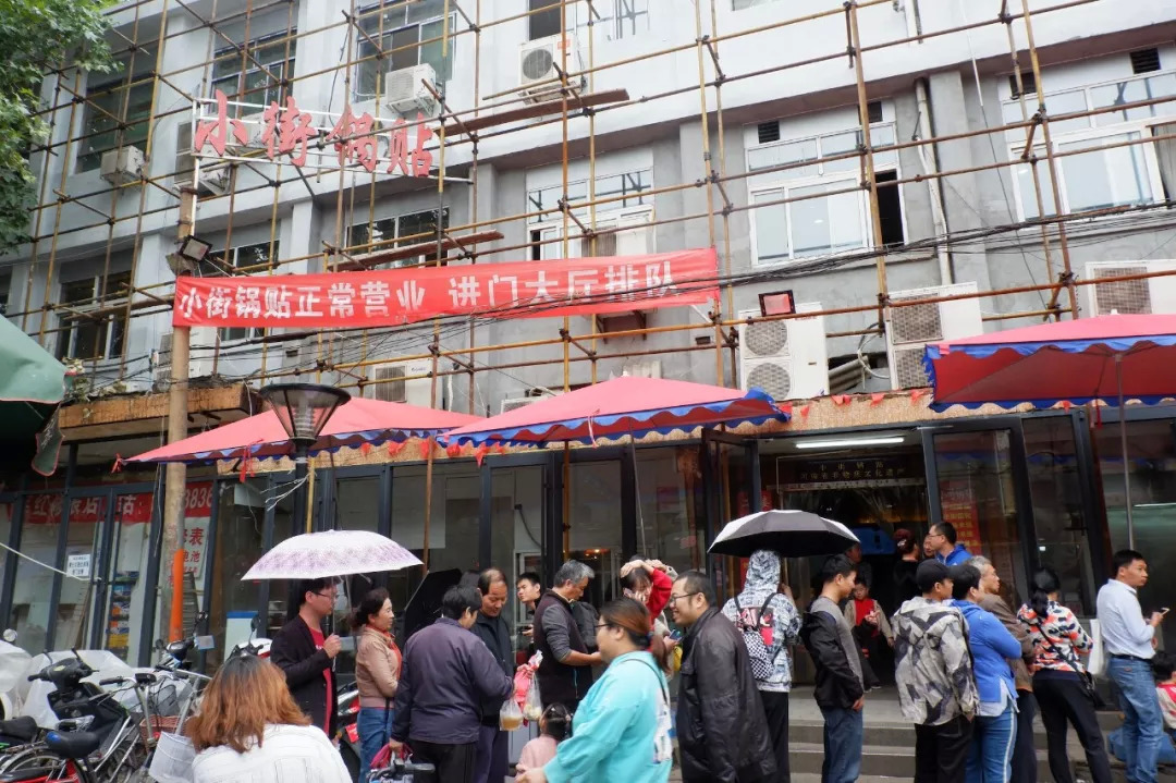 小街锅贴所在的这条街,正处于拆迁进程中,包裹着层层脚手架。