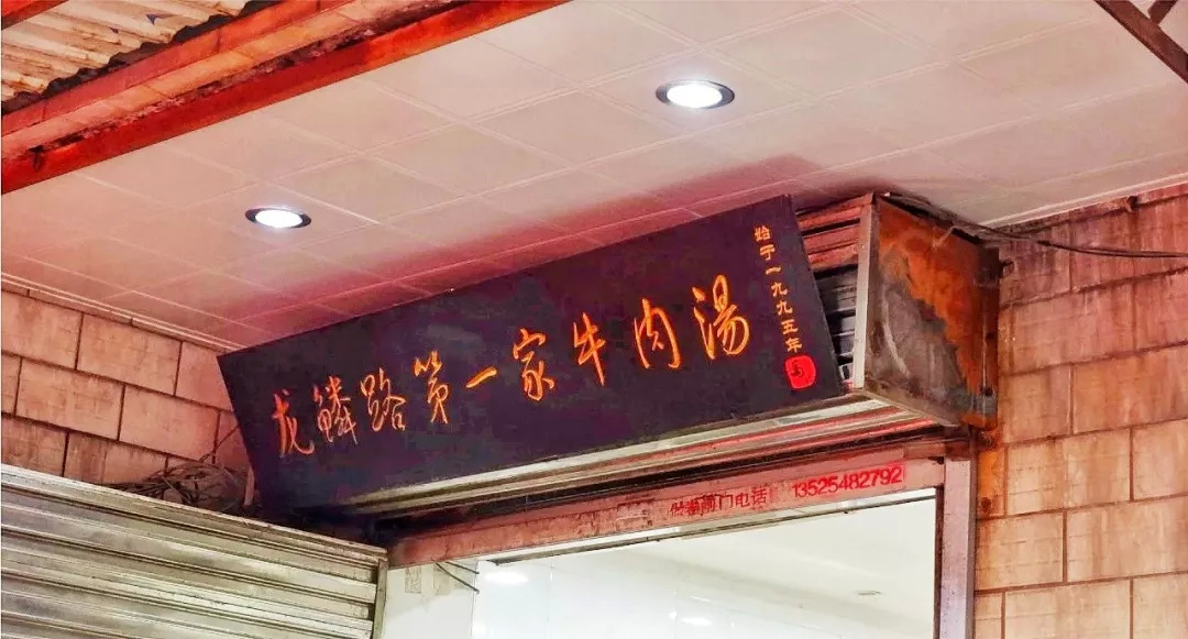评论里粉丝朋友、以及和善的房东太太推荐了不少汤店给我,综合看下来“龙鳞路第一家牛肉汤”这个看起来就很有范的店名收获评价颇高。