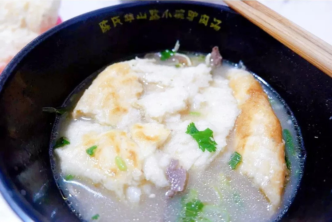 不用勺子,对着碗沿一口口吹着喝(把葱吹开),一口汤紧接着一口长叹,汤喝完,碗里只剩下满满的饼,就去找伙计添汤。吃得饱当当。
