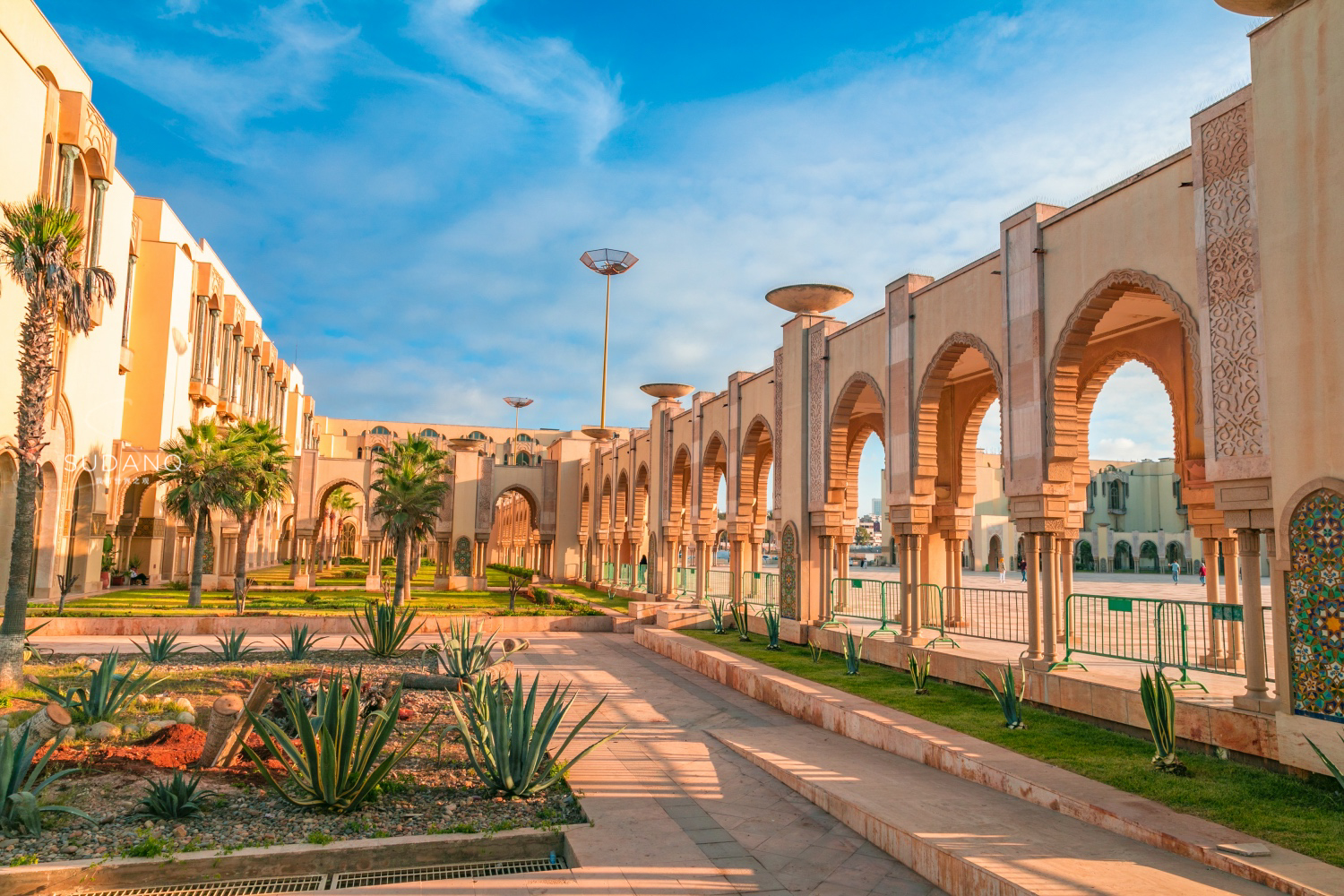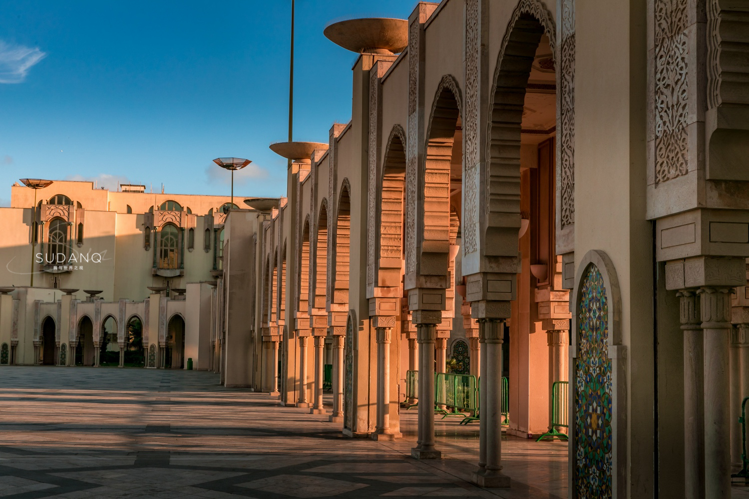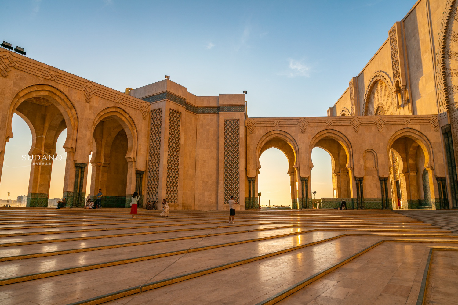 20世纪末,哈桑二世聘请了一位法国建筑师在大西洋滨的一个岩峰上修建了这座可以容纳十万人同时祈祷的清真寺和广场。