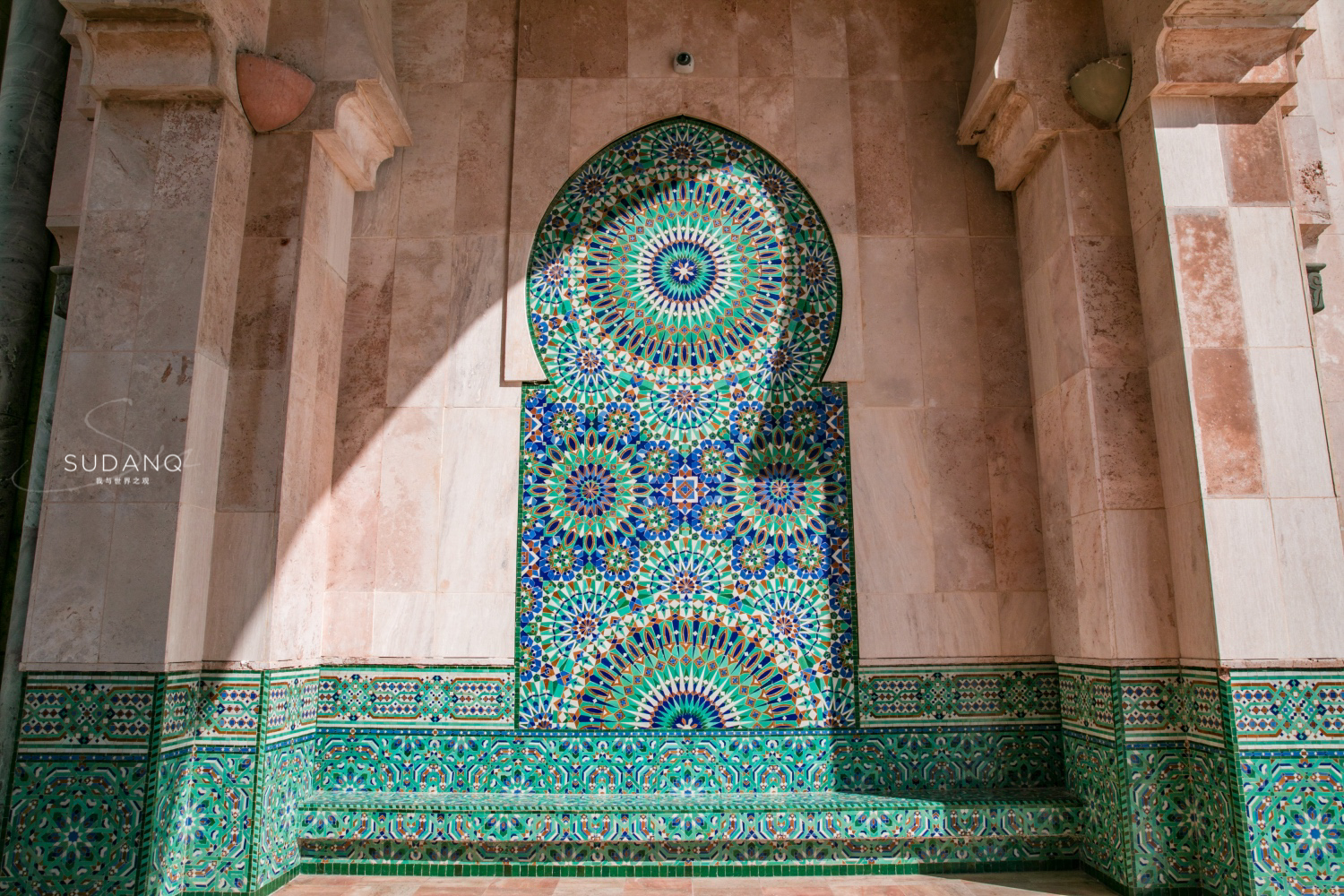 只可惜因为时间关系,并没有进入寺内参观, 但它仍是我非常强烈推荐的一个景点,这是卡萨布兰卡唯一一个可以超越我对手工市场所迷恋的建筑。 难以忘却,大西洋的日落下,这座高大建筑所散发的艺术气息。