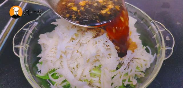 7、再放上蒜末、干辣椒段,浇上烧的冒青烟的热油。这样一盘爽脆鲜美的热呛牛百叶就做好了