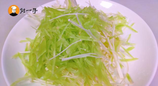 5、这时再把清洗干净的牛百叶切细丝备用,然后把金针菇和莴笋丝放入烧开的锅中,烫一分钟捞出沥干水分放入盆中垫底,这时再把牛百叶放入锅中焯水,再放入料酒和姜片去腥,然后捞出沥干水分,放在金针菇和莴笋丝上