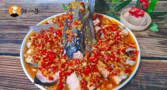 7、摆盘,把鱼头竖起来这样霸气。这时香辣过瘾的剁椒鸭嘴鱼就做好了