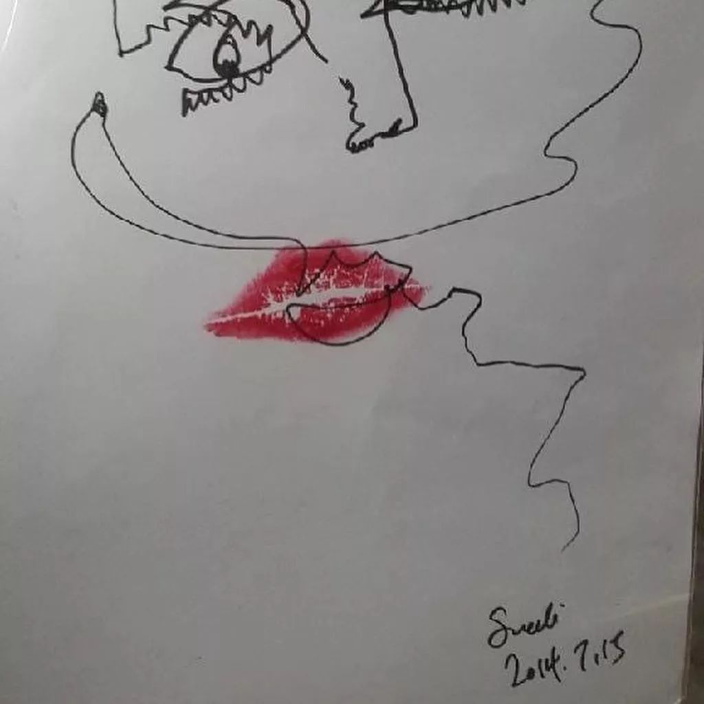 放大看这张画作,署名是雪莉,而且是雪莉5年前画的,可见IU内心有多难过。