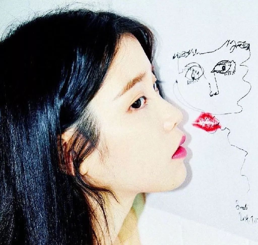 今天凌晨,IU发布新的动态,是她亲吻一张画作的照片。她表情严肃,眼神呆滞。
