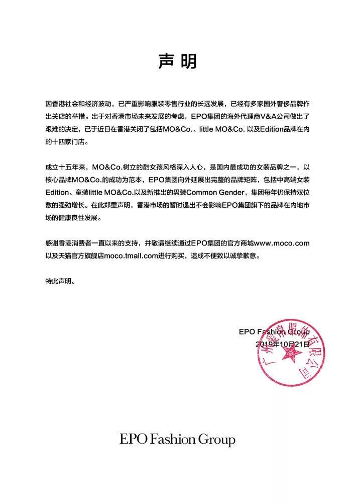 关闭的只有MO&Co.、little MO&Co.以及Edition品牌在香港的14家门店,有它在全球范围内的近千家店铺的庞大基数,丝毫不影响它继续圈钱。