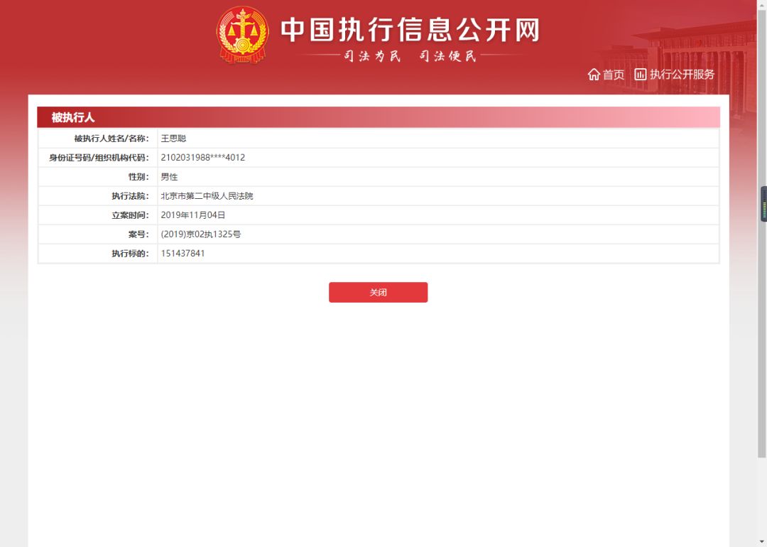 北京市第二中级人民法院6日午间回应澎湃新闻记者,“王思聪确有在我院作为被执行人的执行案件,案号为(2019)京02执1325号,于11月4日刚刚立案执行,刚才发布的那条信息是在中国执行信息公开网查询到的被执行人信息。”