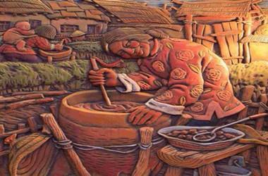 我的一位同事是东北人。她说,东北人家,都有酱缸。每年农历二月始做酱。先煮黄豆,煮到软烂。用绞刀子绞成泥,又捏又摔,做成“酱块子”。包上黄纸,晾着,慢慢发出一股子酸腐的味道,长出黑毛——总想离那堆东西越远越好。