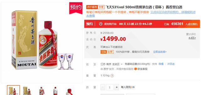 据悉,得益于强大的苏宁物流服务体系,全国90%的1499元飞天茅台酒订单在当日就能送达消费者手中。