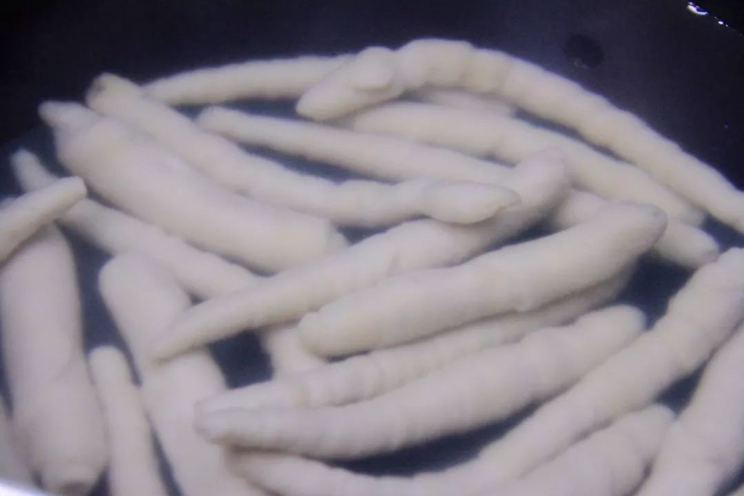 9. 煮好的面筋捞出来后过凉水。