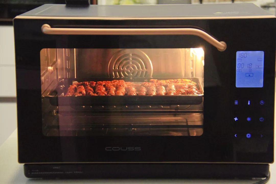 14. 选择上下火烘烤模式,提前180度预热好,将面筋放入中层烘烤约10分钟。