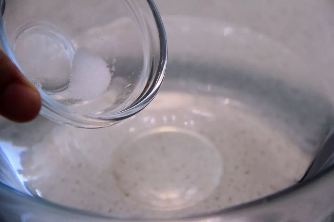 3.碗里加入约50度的温水,加入盐,搅拌至盐融化。