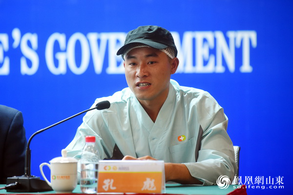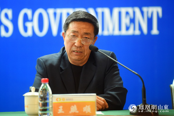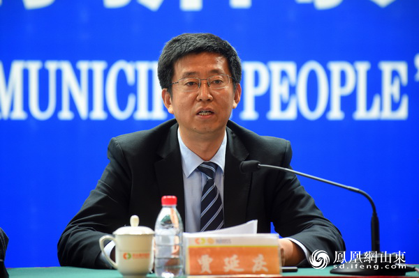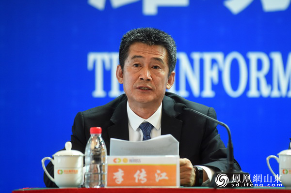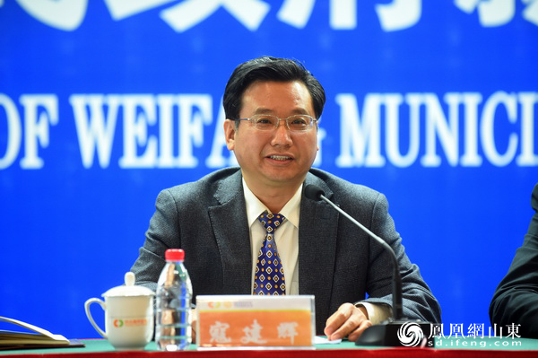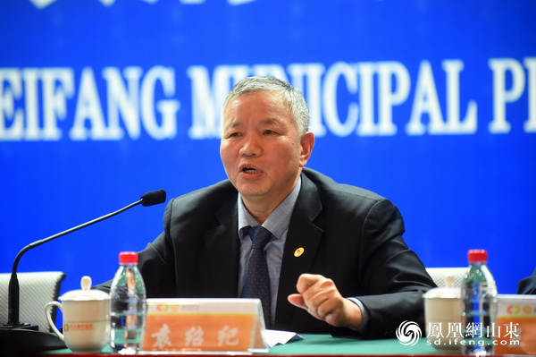 潍坊市人民政府新闻办公室主任李传江主持新闻发布会(摄影 徐建彬)