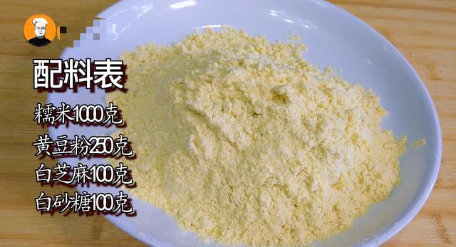 糯米1000克、黄豆粉250克、白芝麻100克、白砂糖100克