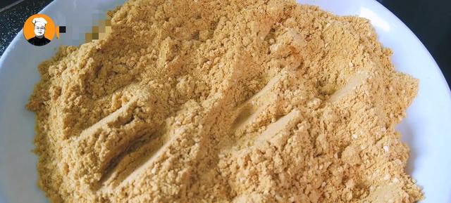 4、先把提前10个小时泡好的糯米用手捏一下轻松捏碎,就说明泡好了,做打糕泡糯米时间非常重要,时间越长做出来的打糕越糯,白芝麻放在捣碎器中捣碎,再把捣碎的黄豆粉和白芝麻放在一起