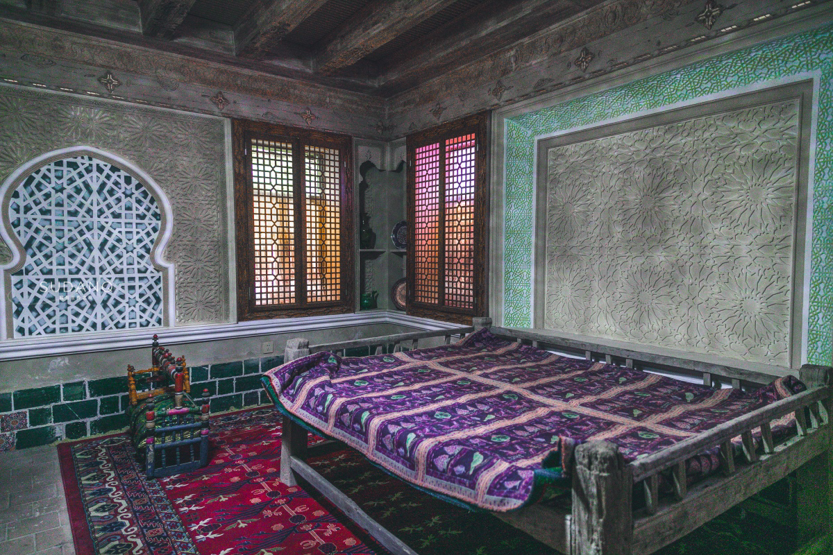 在“香妃”家,几乎每间房子的风格都独具特色,不论是门窗还是格局,无处不在显露着一个大家族的财力和地位。这是一个看似睡大通铺的地方,但看着却是非常奢华,令人眼前一亮。