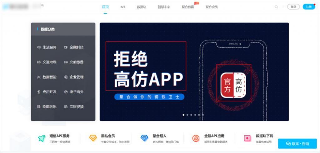 例如,我在网上找到了一个数据库网站,它在首页上明晃晃的放着 " 拒绝高仿 App " 几个大字。