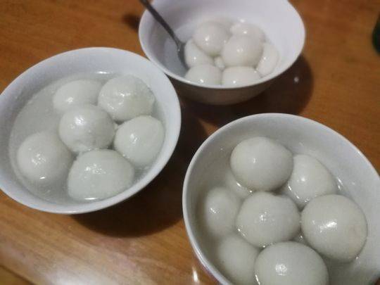 吃汤圆也是冬至的传统习俗,在江南尤为盛行。“汤圆”是冬至必备的食品,是一种用糯米粉制成的圆形甜品,“圆”意味着“团圆”“圆满”,冬至吃汤圆又叫“冬至团”。民间有“吃了汤圆大一岁”之说。冬至团可以用来祭祖,也可用于互赠亲朋。
